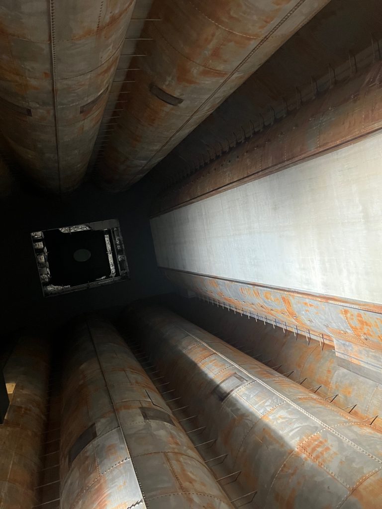 Spektakulär anzuschauen sind die historischen Silos, die eine Verbindung zwischen Alt- und Neubau schaffen, durch Lichtinszenierung wird der alten Industriekultur ein Denkmal gesetzt.