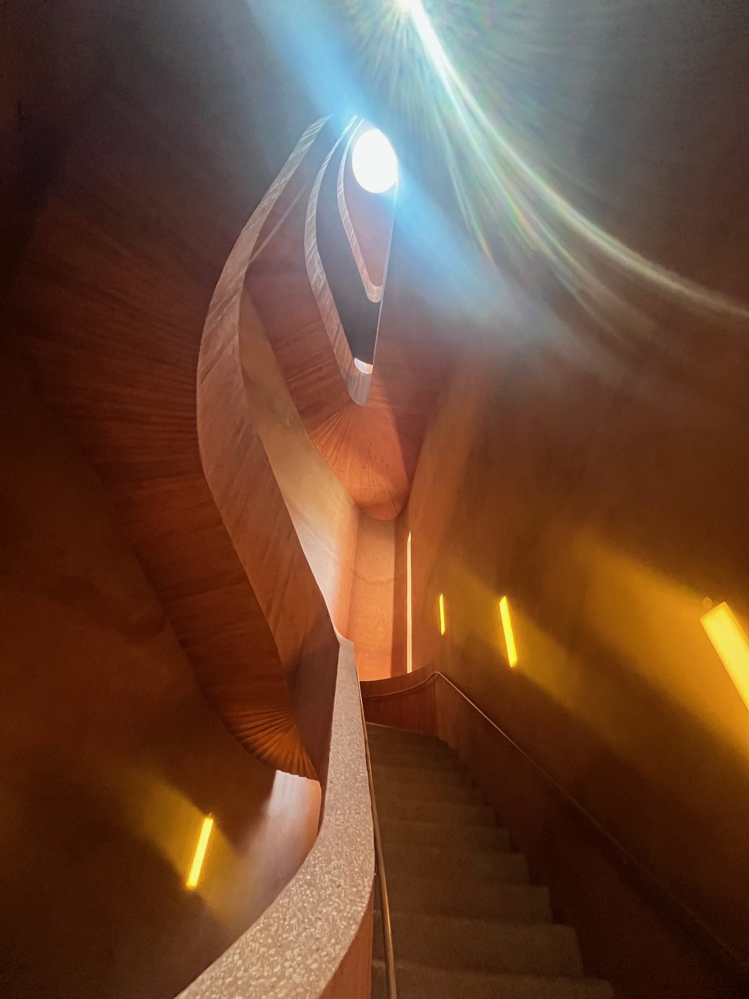 Die Besucher steigen im Inneren des Museums in einer spiralförmigen Bewegung nach oben.